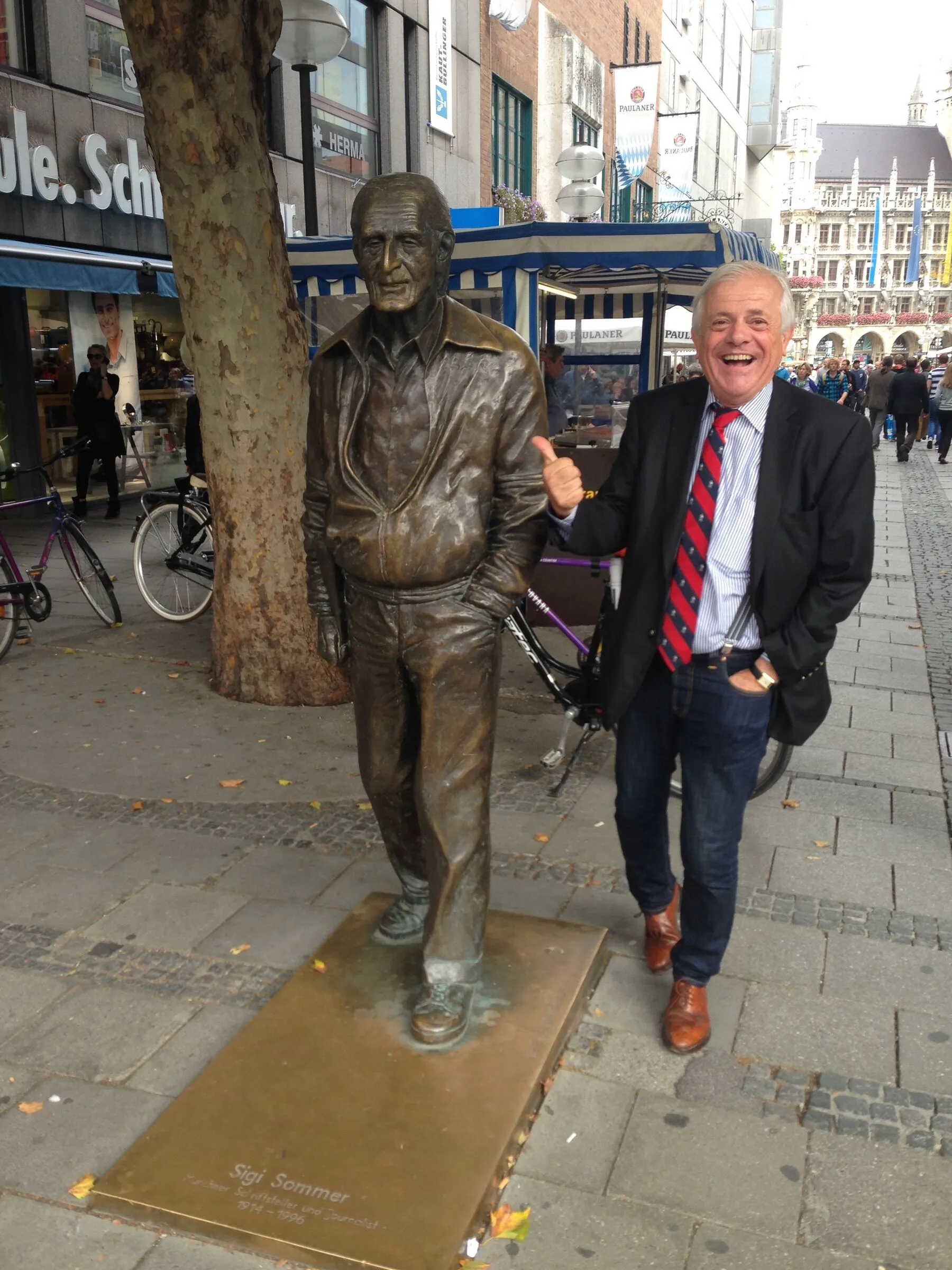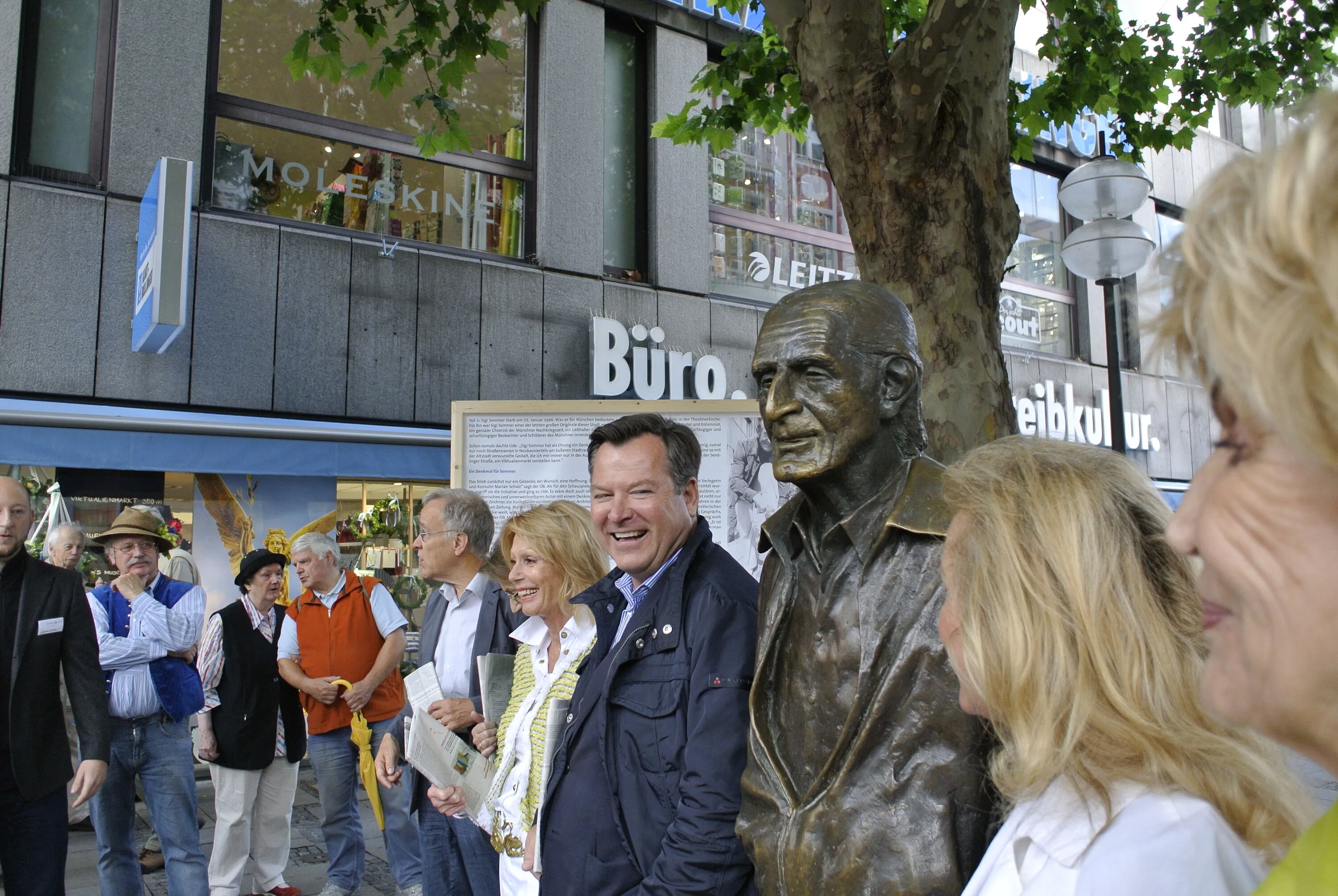 Münchens beliebtester Bürgermeister Josef Schmid beim Sigi-Sommer-Jubiläum am Denkmal des weißblauen Poeten.