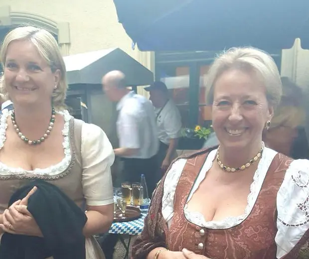 Die Geburtstagsparty beginnt auf der "Augustinerkeller"-Terrasse mit einem Stehempfang, wobei das Gäste-Dress gut zur Geltung kommt. Die Damen m Dirndl, dem anständigsten Kleid mit den unanständigsten Möglichkeiten, und die meisten Herren sogar in kurzer Lederhose mit Stutz. Es wird köstliches Fingerfood serviert, darunter Tatar auf geröstetem Schwarzbrot. Der "Altar" des Abends ist ein riesiger Holzkohlen-Grill. Dort drehen sich langsam knusperig braun werdende "ehem. glückliche Hofhendl" (Speisekarte). Es ist Max Heidens privater Grill. Er hat ihn extra von seinem Anwesen "Kanzlerhof" in Gmund am Tegernsee hereinbringen lassen. Die Hendl brauchen überraschenderweise zwar etwas länger, sind aber Weltspitze. Knusperig-krachende Haut, saftiges Fleisch, so gut wie es die Hühner nur auf dem Oktoberfest bei einigen Wirten gibt. Großgastronom Roland Kuffler ("Spatenhaus"), der sonst in seinen eigenen Lokalen eher wenig auf seinen Teller nimmt, greift gleich zweimal zu, so köstlich munden ihm die Heiden-Hendl. Tischnachbar Feldmeier hätte was versäumt, wenn er früher gegangen wäre.