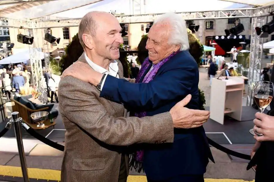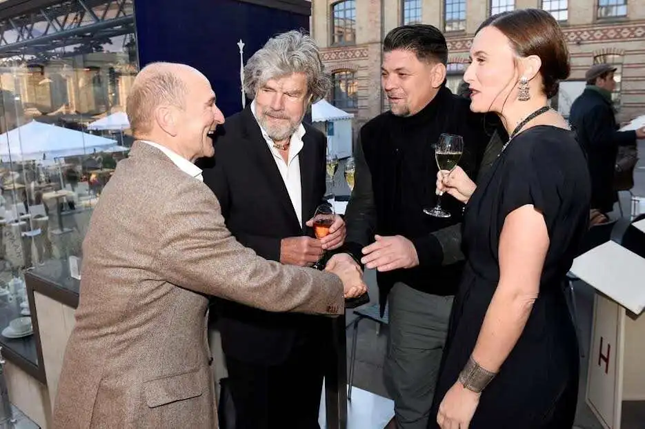Es folgten zehn kurze, knackige Ansprachen, darunter meldete sich neben Bergfex Reinhold Messner der frühere Berlin-Chef Klaus Wowereit:" Heute ist Berlin mit zwei Restaurants in der "Pellegrino"-Liste der "The World's Best 50 Restaurants" vertreten. Darauf können wir nur stolz sein, weil Witzigmann die Pionierarbeit geleistet hat." Aus Zürich reiste "Yello"-Legende Dieter Meier, der neuerdings öfters in Berlin zu tun hat. Der nebenberuflich erfolgreiche "Steakfleisch"-Produzent mit Produkten aus eigener argentinischer Zucht betreibt an der Spree die zwei Restaurants "Torbar" und "Ojo de Agua". Der Schweizer verriet:" Ich war überglücklich als Witzigmann vor zwei Jahren nach einem Testessen für mein Fleisch den Daumen hob." Er brachte Ecki hochreine Schokolade mit 90 Prozent Kakao mit, eine selbstgemachte, und erklärte:" Ich baue gerade eine grosse Manufaktur in Zürich, mit der wir die Schokoladenbranche revolutionieren: Ohne Zuckerbeimischungen und Streckmittel wie das üblicherweise gemacht wird". Ich glaube, Lindt wird sich warm anziehen.