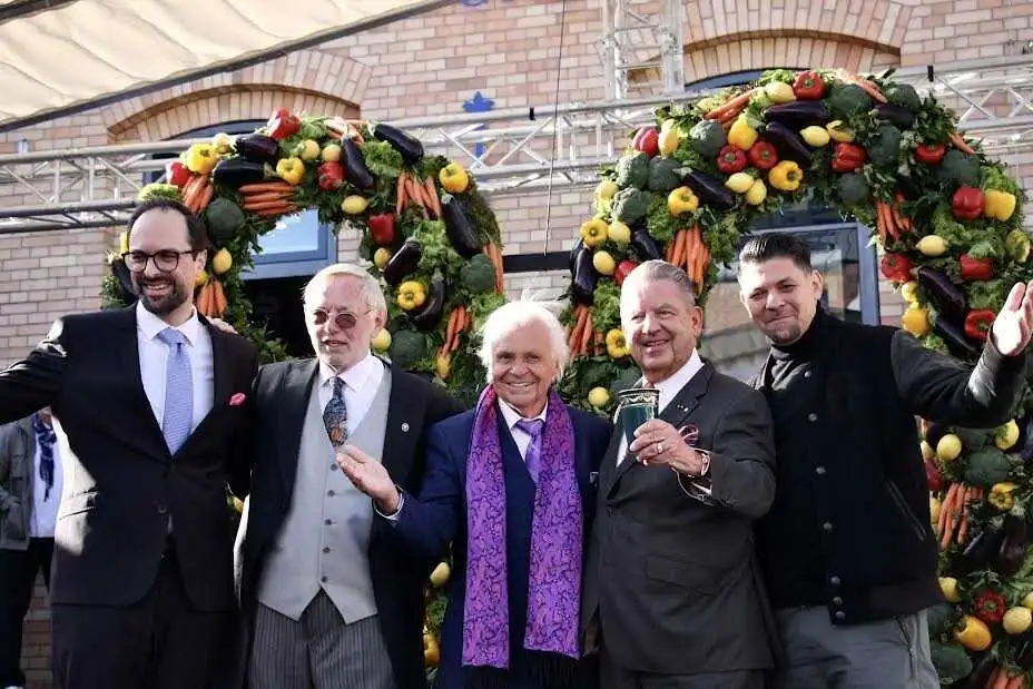 Party-Karajan Hans Peter Wodarz (" Palazzo Berlin"), einst mit der "Ente im Lehel" in München und Wiesbaden eine Marke geworden, arrangierte das Fest und hatte das Glück, einen herrlich sonnigen Tag zu haben. Als souveräne Gastgeber strahlten KPM-Big-Boss Jörg Woltmann und Hotel-Chef Tobias Berghäuser. Eckart Witzigmann, im blauen Einreiher und happy wie schon lange nicht mehr, trat ins Rampenlicht und wurde er mit prasselndem Applaus empfangen. Ecki lächelte in alle Richtungen und stand allein auf einer Bühne, die mit einer riesigen, aus frischem Gemüse geflochtenen Zahl "80" geschmückt war. "Es gibt eine kulturelle, kulinarische Zeitrechnung in Deutschland vor und nach Witzigmann", sagte Wodarz, zum großen Tag in einen Cut gewandet.