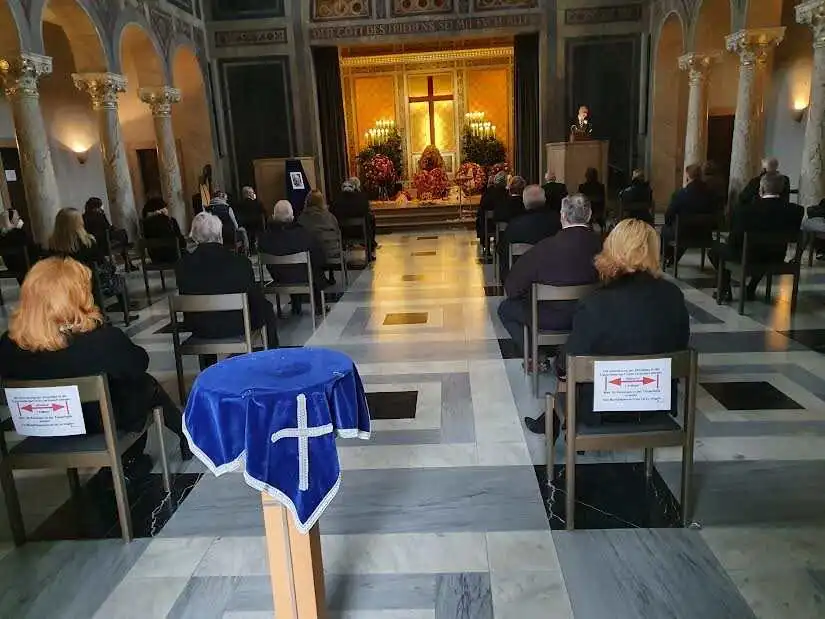 Wer pünktlich zu der Beerdigung gekommen war, konnte einen der 50 Stühle ergattern. Auch diese Zeremonie unterlag den gegenwärtigen Hygiene-Vorschriften. Alle anderen Trauergäste mussten vor dem Gebäude stehen. Über einen Außenlautsprecher war Frank Sinatra ("My Way"), die Rede eines unabhängigen Geistlichen und der Gesang des Gastronomen Joschi Lamm zu hören, der sein Lied a la Playboy James Graser vortrug und von einem Harfenspieler begleitet wurde. Mit Ausnahme von einem gemeinsam gesprochenen "Vaterunser" war die Abschiedsansprache gereinigt religionsfrei. Man erfuhr von der grandiosen Karriere Hammeles und dessen intensivem Leben, der nichts ausgelassen hat und der Vorliebe für Oldtimer. Zuletzt habe sich der Unruheständler über einen reparaturanfälligen "Jaguar" mit "H"-Kennzeichen geärgert.