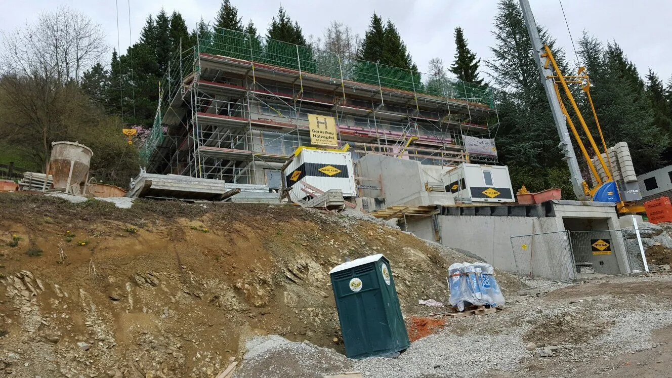 gleichnamigen „Lago di Bonzo" fertiggestellt wird, besteht aus Fels und darüber drei Meter bewegter Humus, das in dieser Kombination einen unsichern Untergrund bedeutet. Spezialkonstrukteure haben deshalb den Bau am Berg massiv mit Beton und Stahl gefestigt.