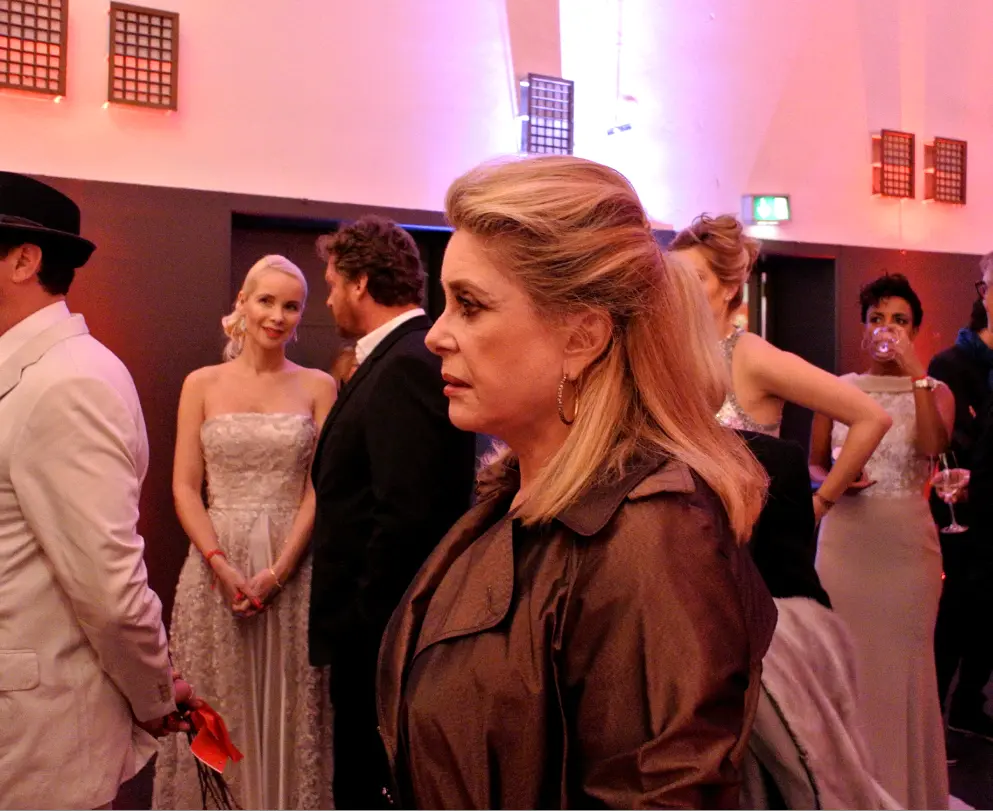 Am Eingang des Post-Palastes blieb sie zunächst unerkannt. Erst als die Fotografen von der blonden Reinkarnation einer Anna Nicole Smith abliessen und die "Belle de Jour" auf dem roten Teppich erschien, musste die Deneuve ein mediales Spiessrutenlaufen (ohne Kirschzweig) absolvieren. Sie wurde in eine hintere, abgegrenzte Ecke geführt, wo sie auf einem weissen Sitzmöbel Platz nahm.