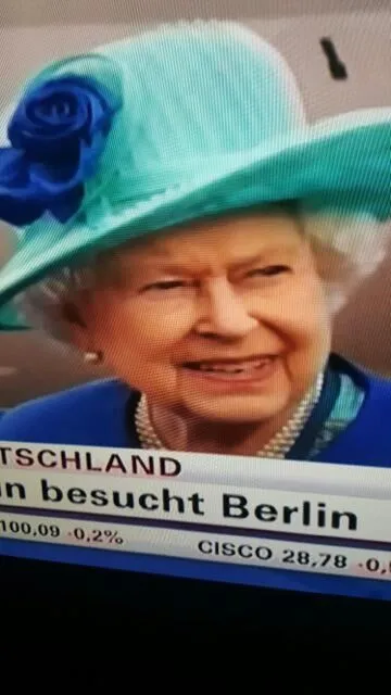 Die Berliner jubeln trotz Regenwetter über den Queen-Besuch. Im Schloß des Bundespräsidenten lächelt die Queen nur einmal, als ihr ein Geschenk präsentiert wird. Ein Gemälde mit Elizabeth als Kind auf einem Pferd von Malerin Nicole Leidenfrost. "Meinen Vater kann ich da nicht erkennen", sagt die Königin. Das Bild wurde nach einer Fotovorlage gemalt.