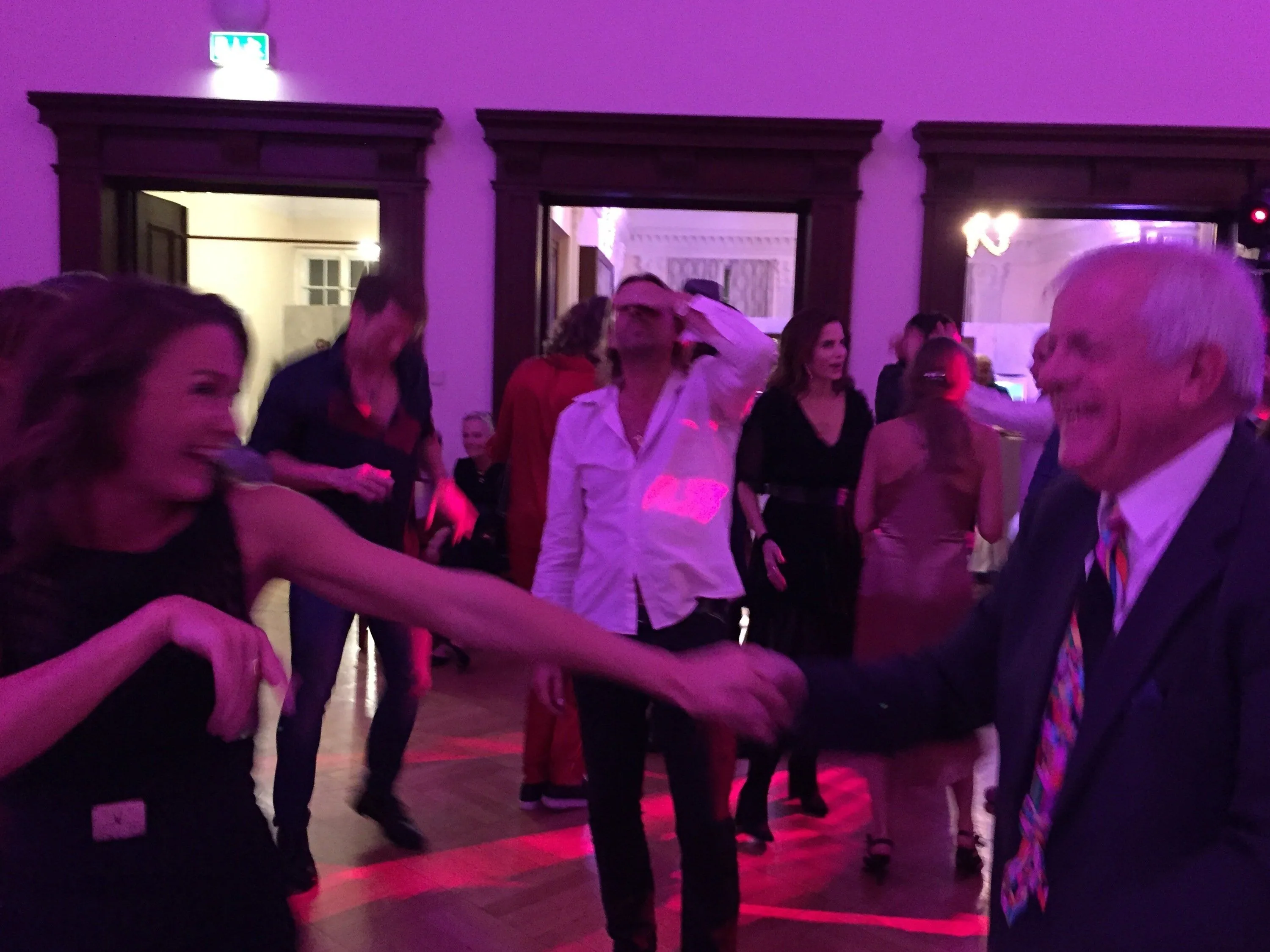 Aufgeblüht wie nie in seinem Leben, das sehen alle auf der Party, ist Künstler Rolf Sachs, der früher stets ein bißchen den Schatten von Vater Gunter Sachs hinnehmen musste. Sein Gesicht strahlt wie ausgewechselt. Wie ein glücklicher Junge unterm Weihnachtsbaum. Die Arznei heißt wohl Prinzessin Mafalda von Hessen, seine neue Liebe, mit der er eifrig tanzt und für die er nach Rom gezogen ist wo die beiden in einem antiken Palast leben. Mafalda trägt einen roten Hosenanzug, mit dem man spielend auch zum Fallschirmspringen gehen könnte.