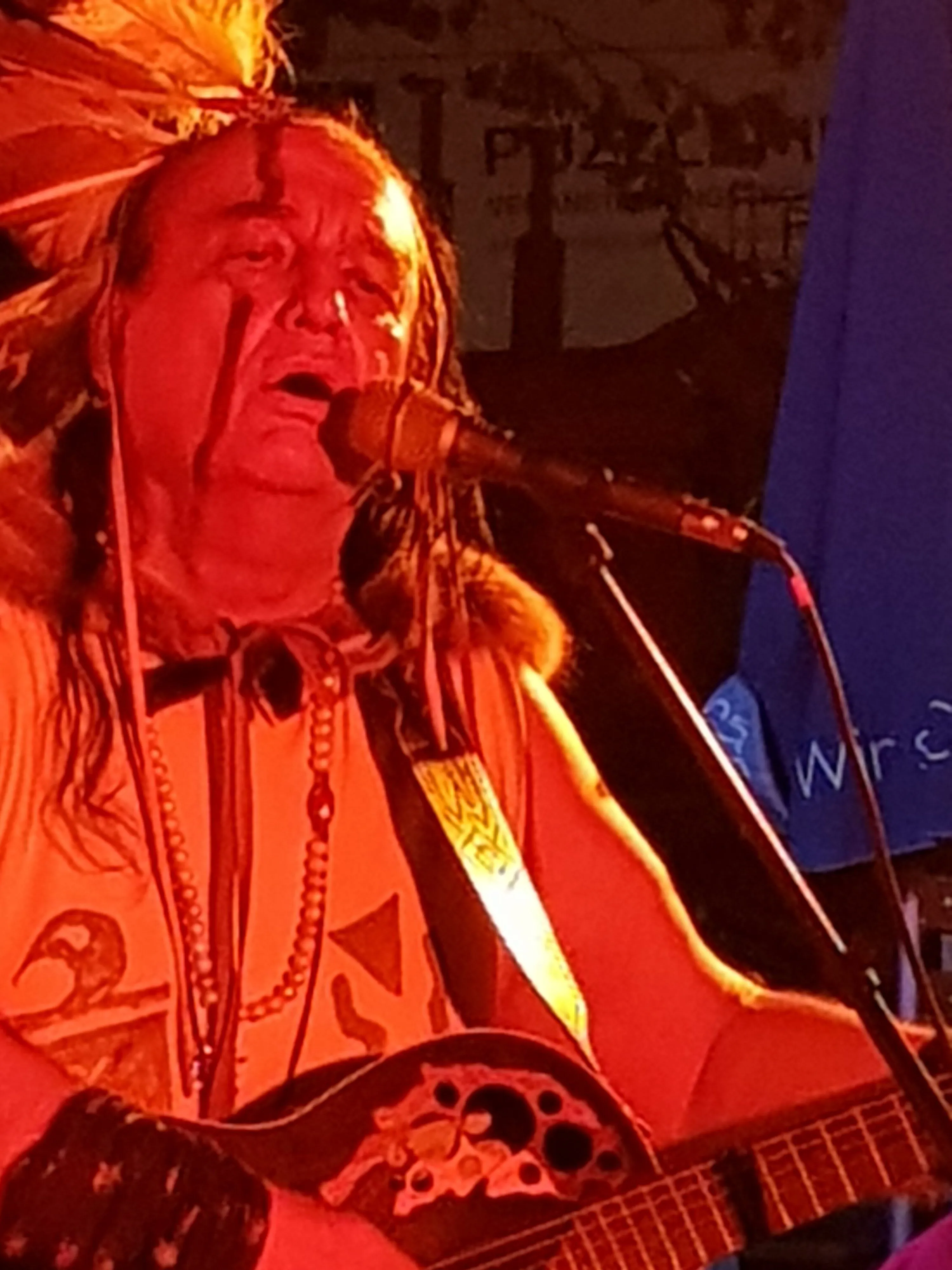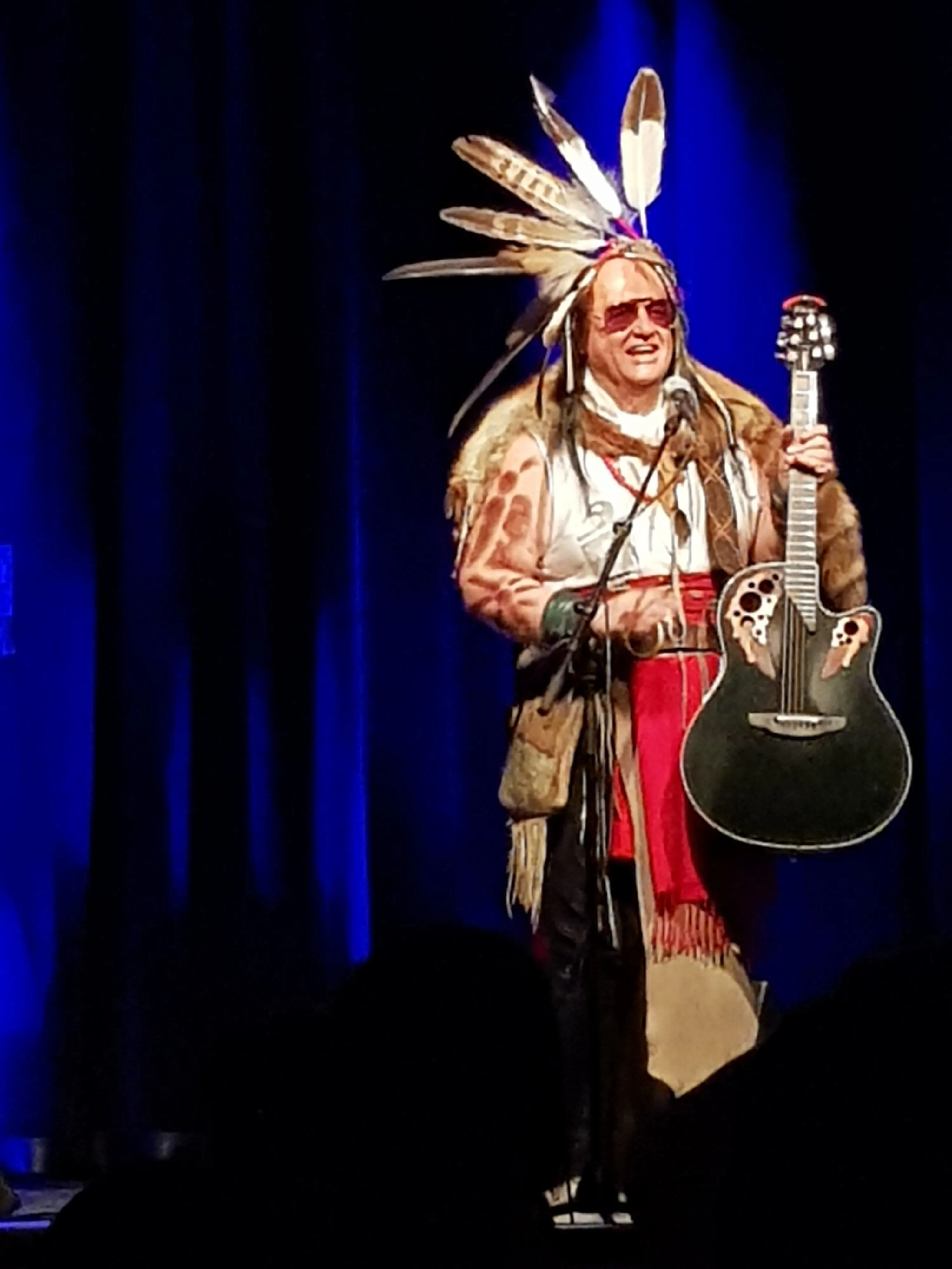 Dazwischen gibt es auch leichtere Lieder-Kost – da summen ergebene WM-Fans leise mit. Wenig später ist Pause, die eigentlich nicht sein muss, die er mit einer halben Bier, alkoholfrei, beginnt. Der zweite Teil ist ebenso pur und identisch. Auf seinem Kopf stecken jetzt sieben Adlerfedern. Applaus und Jubel. Nach der vierten Dreingabe wollen sie Willy Michl und Cora noch immer nicht gehen lassen.